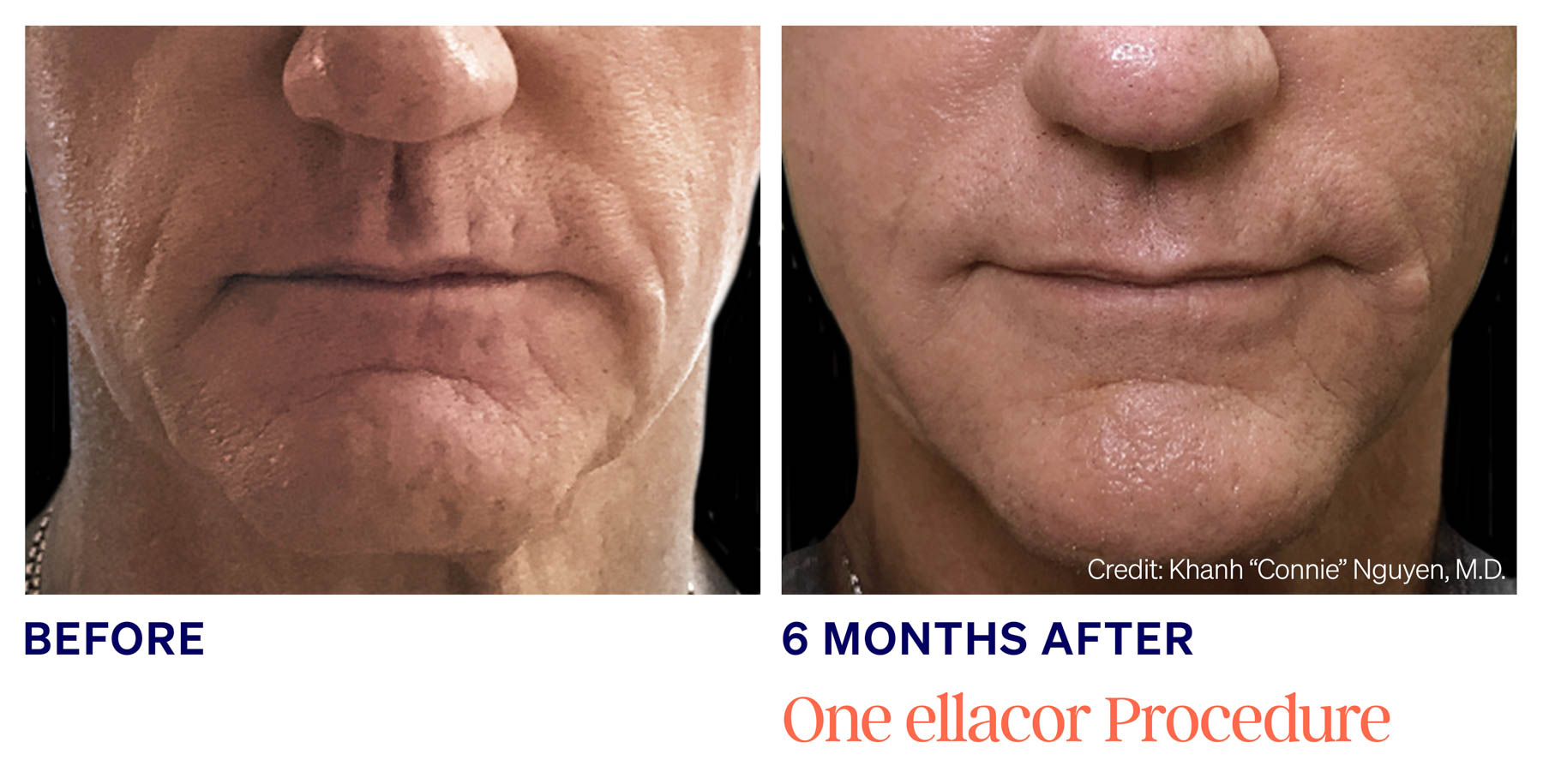 ellacor uses hollow needles to remove micro-cores of skin, resulting in an improved appearance of moderate and severe wrinkles in the mid and lower face without the evidence of scarring.